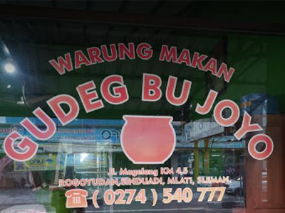 Satu lagi warung gudeg khas Jogja yang sangat disarankan untuk dicoba masakannya, yaitu WARUNG GUDEG BU JOYO. Warung gudeg yang terletak di utara batas kota Jl. Magelang Km. 4,5 ini menyediakan gudeg yang sudah tidak diragukan lagi kelezatannya. Selain menu favorit tersebut, warung ini juga menyediakan berbagai makanan lain yang tak kalah enaknya, seperti nasi tumpeng dan nasi kenduri. Karena cita rasanya yang memikat, tak jarang WARUNG GUDEG BU JOYO mempunyai pelanggan tetap dari berbagai daerah. Bagi penikmat makanan khas Jogja, jangan lupa untuk mencicipinya. Kami siap melayani anda setiap hari jam 06.00 - 18.00. ....................(Gudeg di jogja, Gudeg paling enak di jogja, Gudeg kuliner khas jogja, Gudeg terkenal di jogja, Gudeg legendaries di jogja, Gudeg Istimewa, Gudeg paling di gemari di jogja, warung gudeg di jogja, restoran gudeg di jogja, Gudeg paling di minati di jogja, sentral gudeg di jogja)